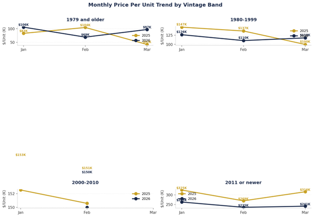 Average Price Per Unit by Vintage — Q1 2025 vs Q1 2026
