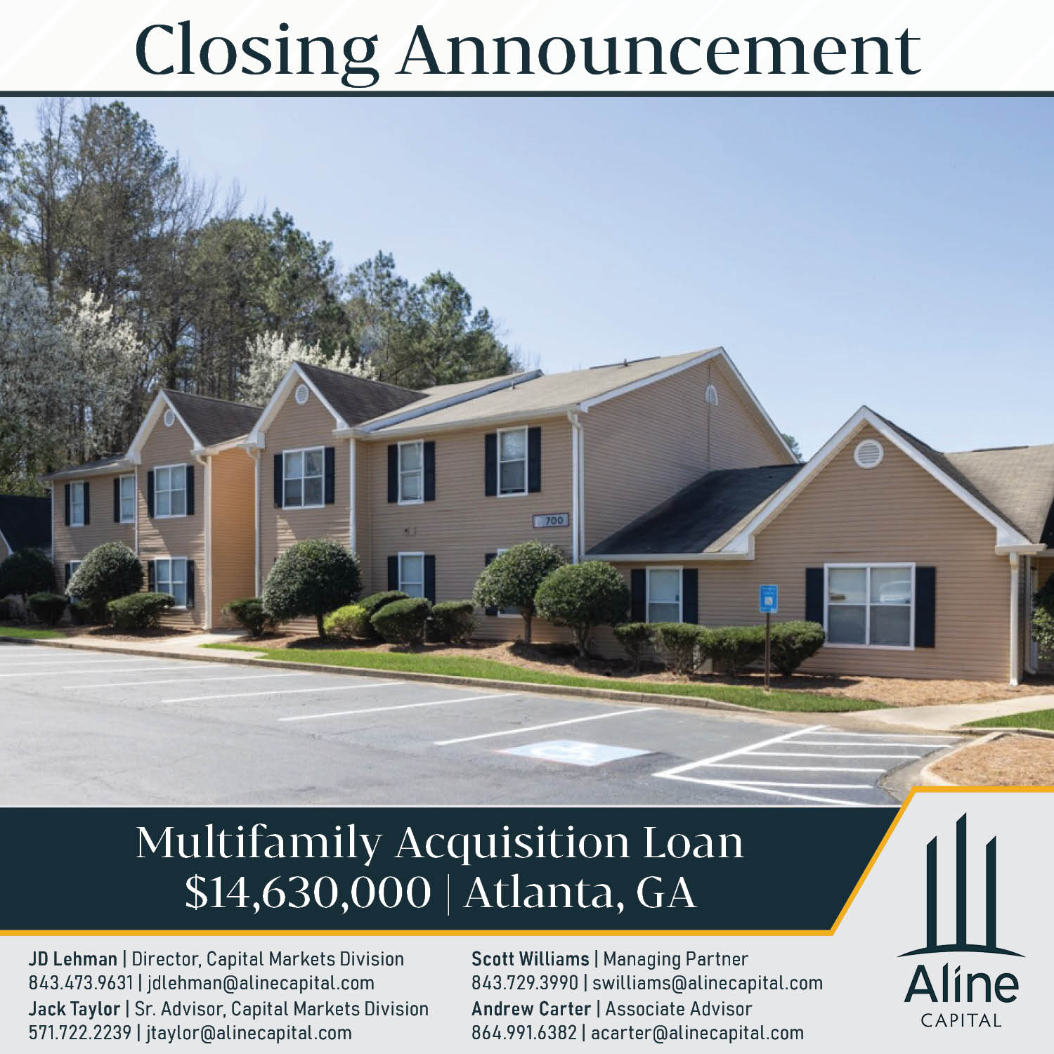 Aline Capital is pleased to announce the closing of the acquisition financing of a 208-unit multifamily property in Atlanta, GA. The deal was sourced out of foreclosure at a substantial discount to the prior owner’s basis. Aline sourced a 7-year Agency floater that priced 200 basis points over SOFR. This loan included 3-years of interest only payments and a 1% prepay penalty after 12 months. Congrats to our client on a great acquisition and thank you to everyone that helped make this transaction a success!